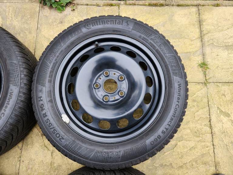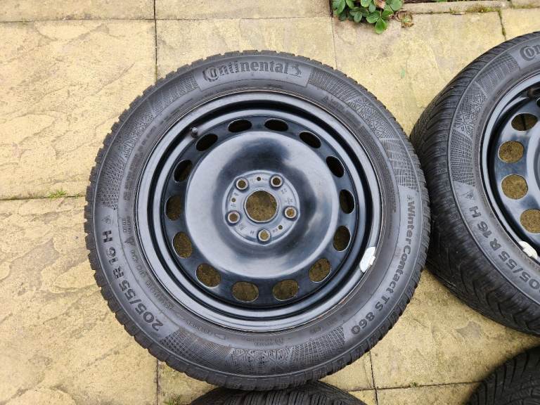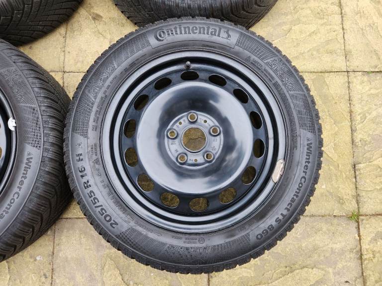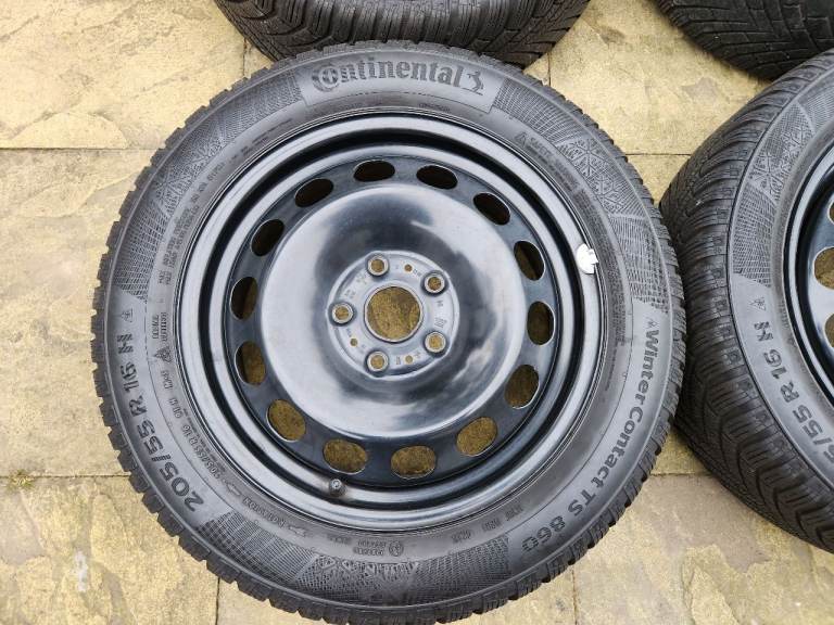 Posting for 12+ yearsFull set of Continental Winter Contact TS 860 205/55 R16 H Winter Tyres on black steel wheels.