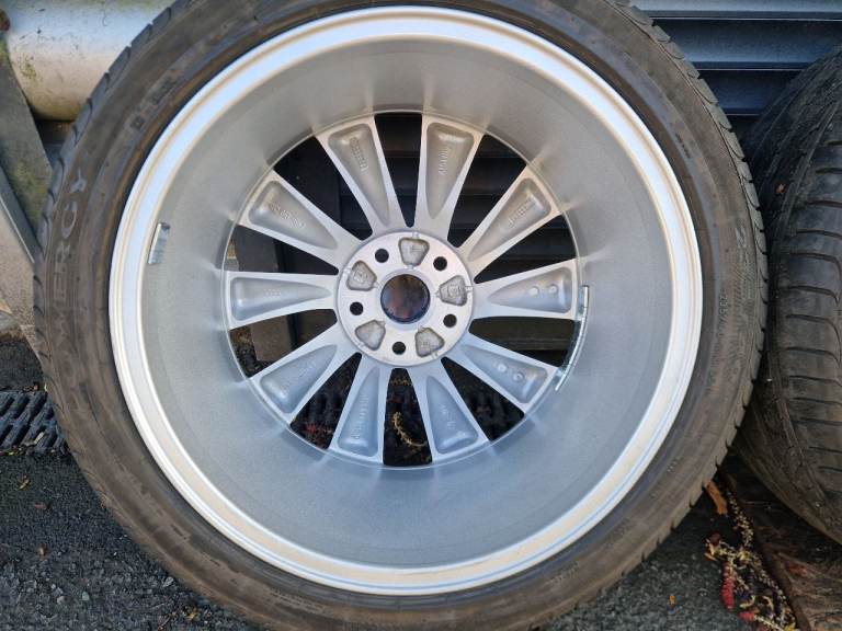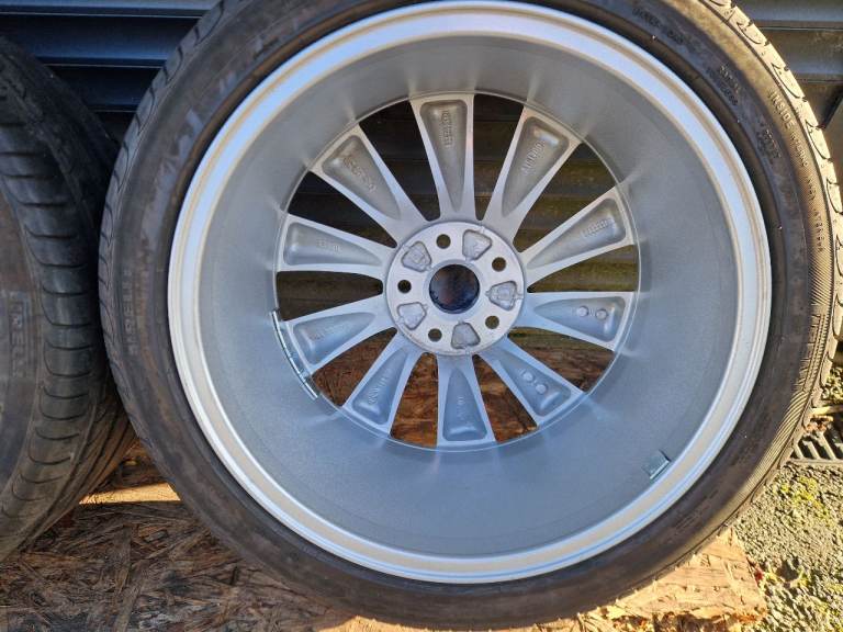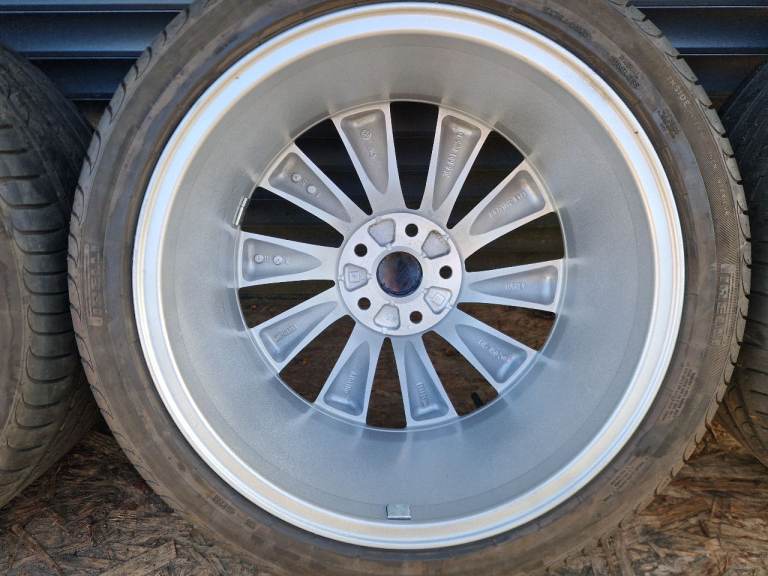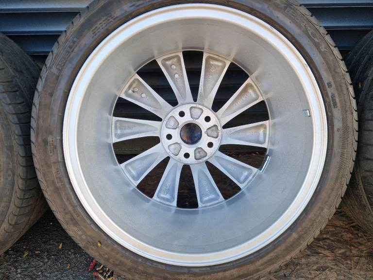 Wheels are fully refurbished by powder coating in silver sparkle (metallic) perfect condition without any cracks welds buckles or scratches wrapped in Matching Pirelli Powercy 235/40/18 5-6 mm tread