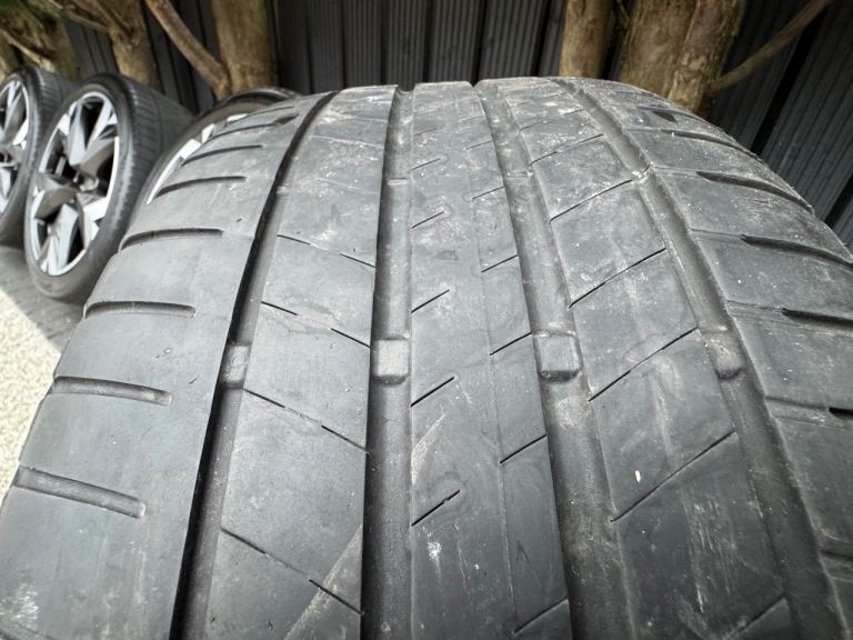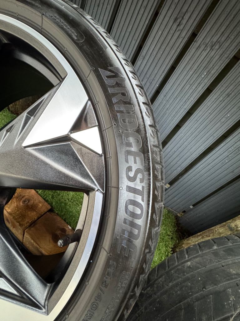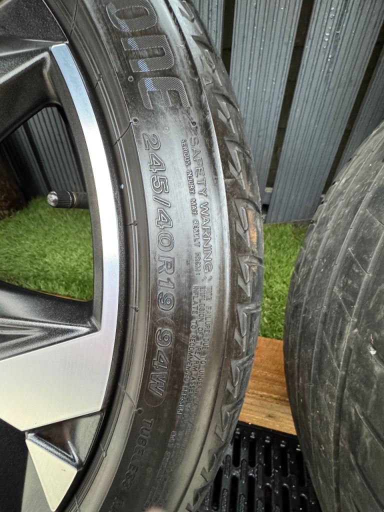 Fitted and balanced matched set of Bridgestone Turanza 245/40/19 tyres all dated 5123 but only have about 3mm of tread left on them so will need changing soon. They come with centre caps and TPMs so ready to just bolt straight on.