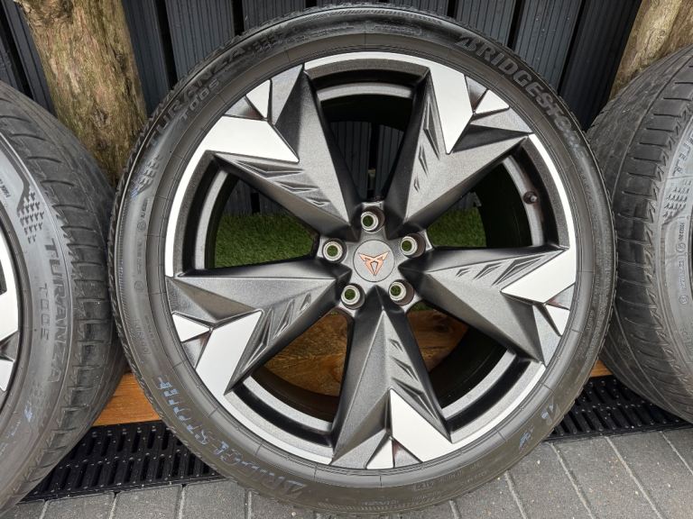The CUPRA TERRAMAR FORMENTOR 19 INCH 8.5 J GENUINE ALLOY WHEELS ET38 245/40/19 tyres are a set of high-quality, 19-inch alloy wheels designed specifically for the CUPRA brand. With a sleek silver or black/silver finish and a stylish diamond cut design, these wheels are not only aesthetically pleasing but also durable and reliable. Made from aluminium, they offer a lightweight yet sturdy construction, perfect for enhancing the performance and handling of your vehicle. With an offset of 38mm and a wheel width of 8.5 inches, these genuine alloy wheels are a perfect fit for your CUPRA TERRAMAR OR FORMENTOR.