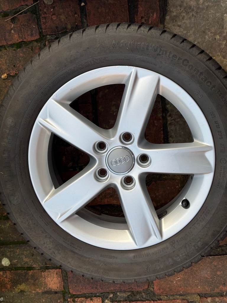 One set of 4 genuine 16 inch Audi alloy wheels with four winter tyres (205/ 55/ R16) - all in great condition with plenty of grip remaining and no worn spots. These alternated on the car with a set of summer wheels and so were used only for 3-4 months a year. Always then thoroughly cleaned and stored in a dry garage.