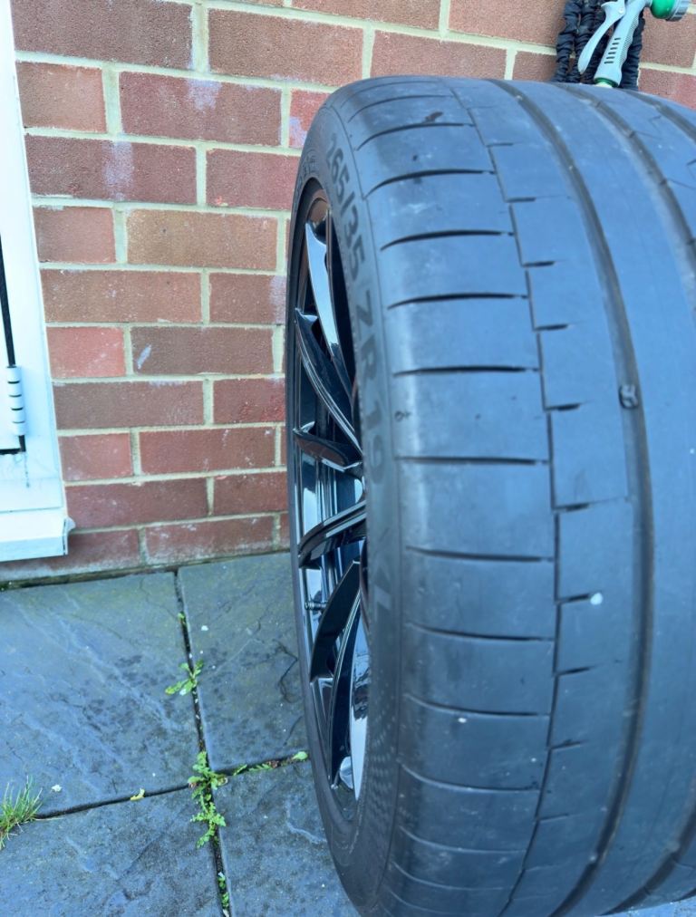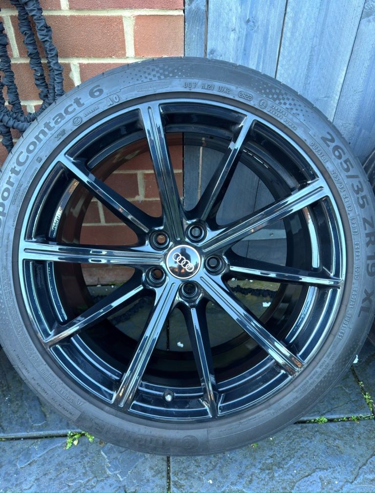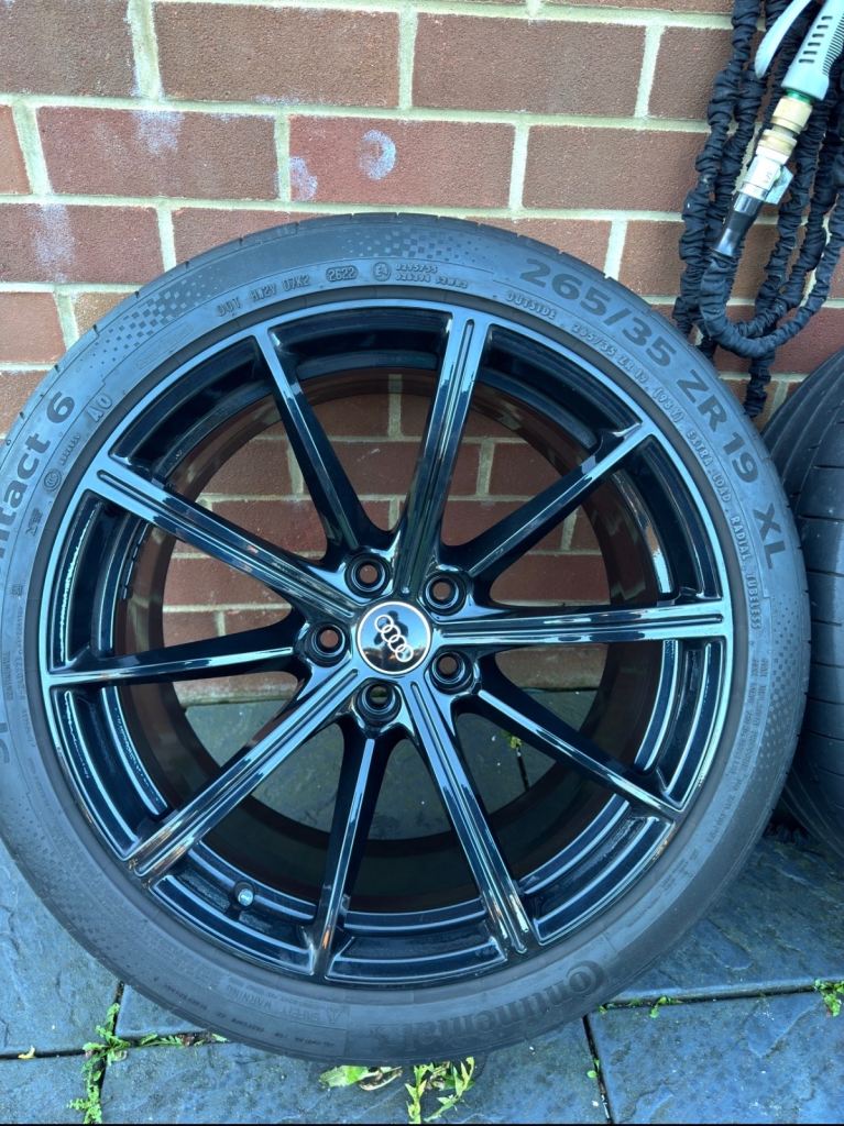 Genuine OEM Audi RS5 19 inches 19x9J ET24 wheels x4 removed from a B9.5 coupe. The wheels are in excellent condition no curb rash and have a nice concave look to them. only selling due to buying custom wheels. The wheels have only done 8k miles all together and were resprayed to black at approximately 5K miles. They come with a set of Continental SportContact 6 with plenty of tread left, can be seen from photos. A set of these wheels alone new are £2,800+ so priced to sell. No silly offers.
