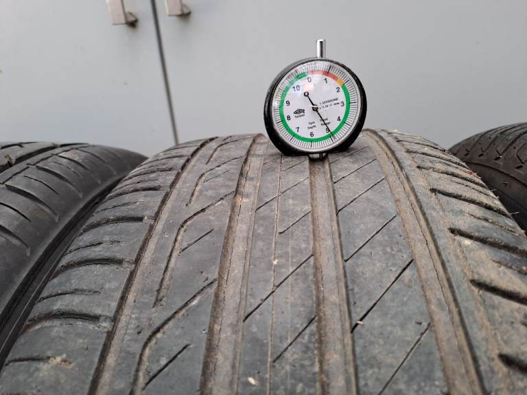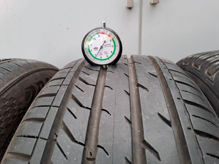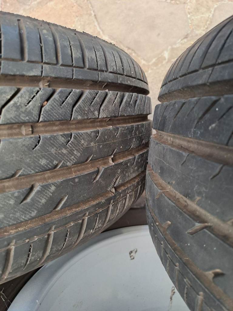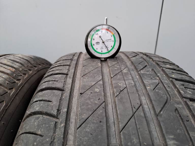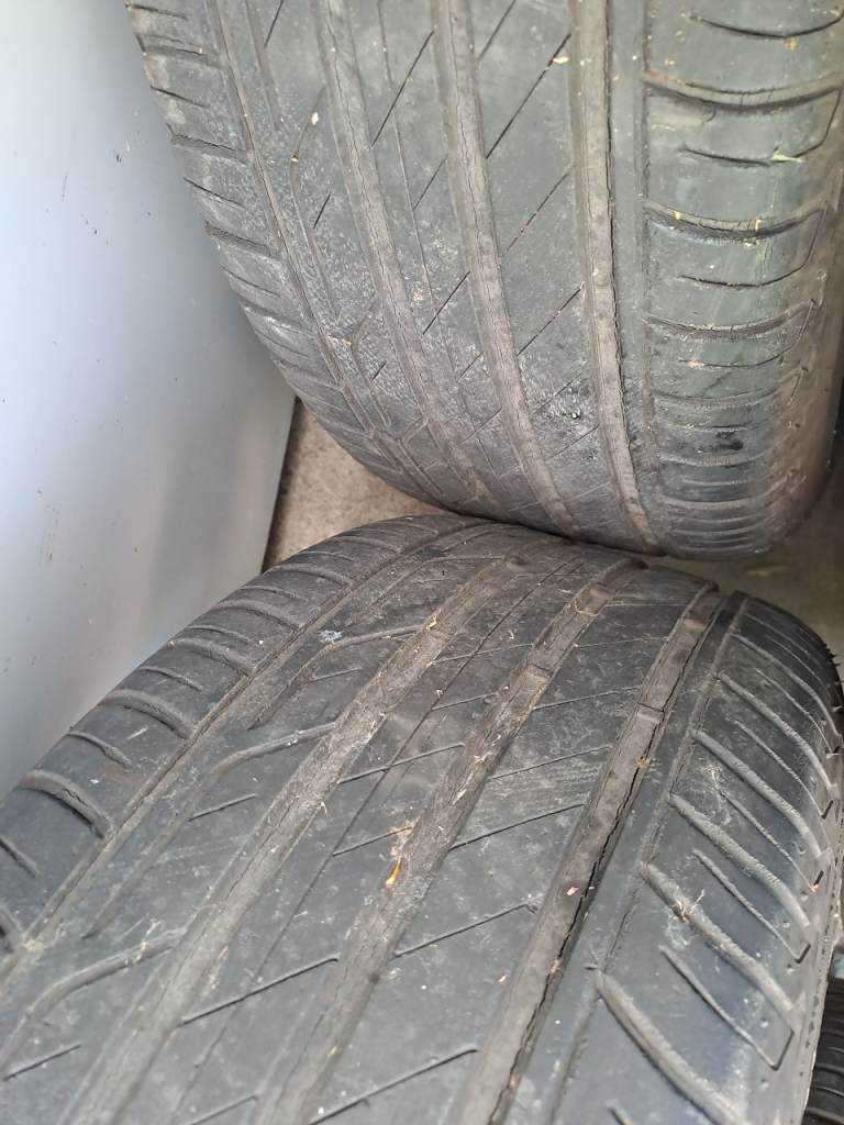 2 tyres are OK. A pair of Bridgestone Turanza with 4-5mm tread. These are older tyres and have a little ageing, but still reasonable life left in them.
