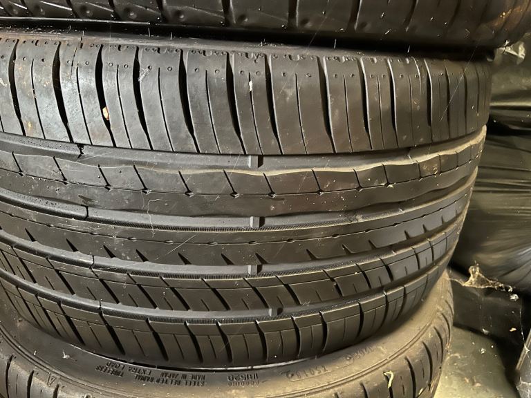 There are three photos of each wheel showing the inside, outside of each wheel and the tyre tread. The two front and one rear wheel are crack free, one rear wheel has a crack.