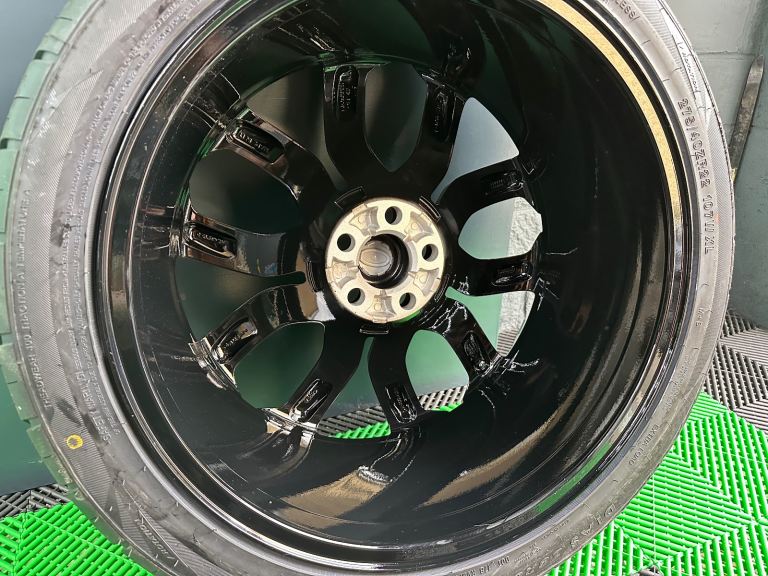 All professionally refurbed and powder coated this week, not a cheap base coat only job - absolutely stunning and perfect 👍 come with the green & black Land Rover centre caps but we can put Range Rover ones in if preferred