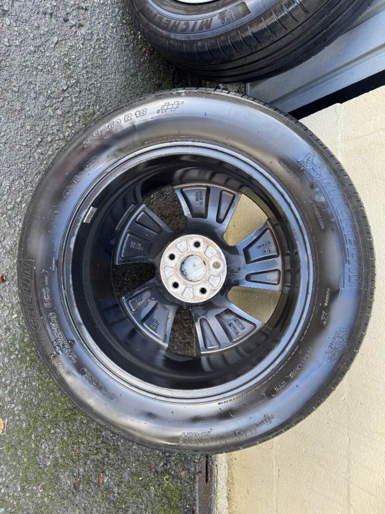 18 x 7 ET45 alloys fitted with 2 Michelin Latitude tyres and 2 with Michelin Pilot tyres. Wheels are in good condition and have no kerb damage. Tyres in good condition - 2 with 5mm of tread, 1 with 4.5mm of tread and 1 with 4mm of tread.