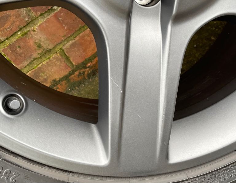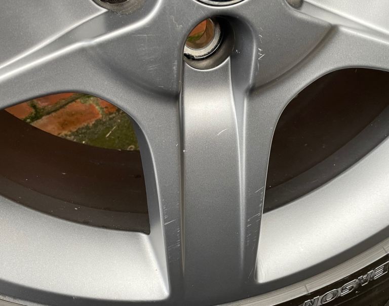 The alloy wheels are in good condition and finished in the factory dark satin grey finish. There are however a few minor scratches to the wheels, as pictured. Please see images in the item listing. If you require any more pictures let me know.