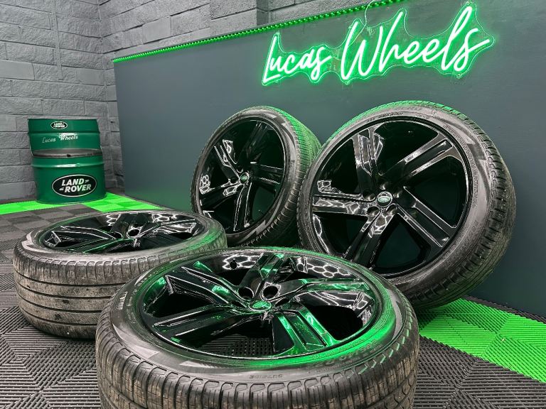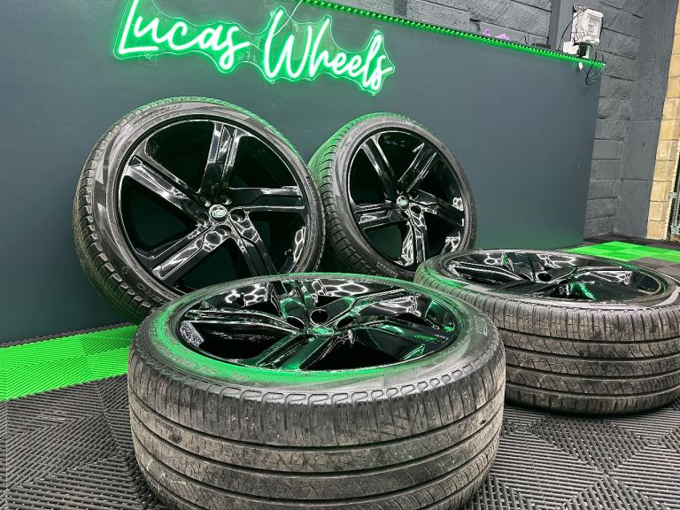 Lucas Wheels presents another stunning set of wheels for sale! These are genuine Land Rover Discovery 5 22 inch style 5124 alloy wheels from a top of the line HSE! They’ve then been freshly and professionally powder coated in high gloss black this week 👍