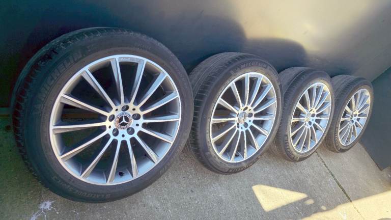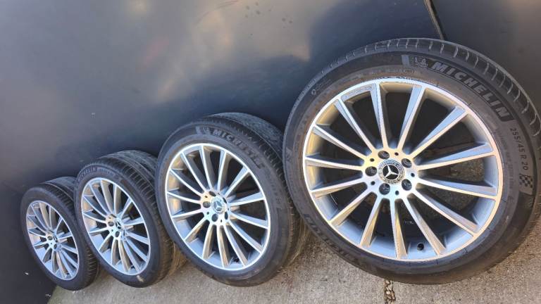 GB Wheels presents these Genuine Mercedes GLC 20" Turbine alloy wheels for sale. As seen in the photos all are in excellent condition in their diamond turned finish. All wheels are genuine with no cracks or welds, matching Michelin tyres fitted.