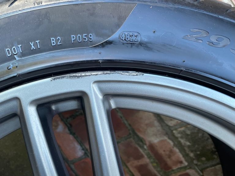 The alloy wheels are in very good condition, however one wheel does have a mark to the edge of the rim, as pictured. One wheel also has a very small stone chip next to the valve. Please see images in the item description. If you require any more pictures let me know.