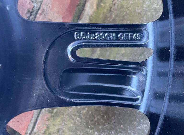 The wheels are in very good condition and are finished in gloss black. There is however a mark to the edge of one rim, as pictured. Please see images in the item description.