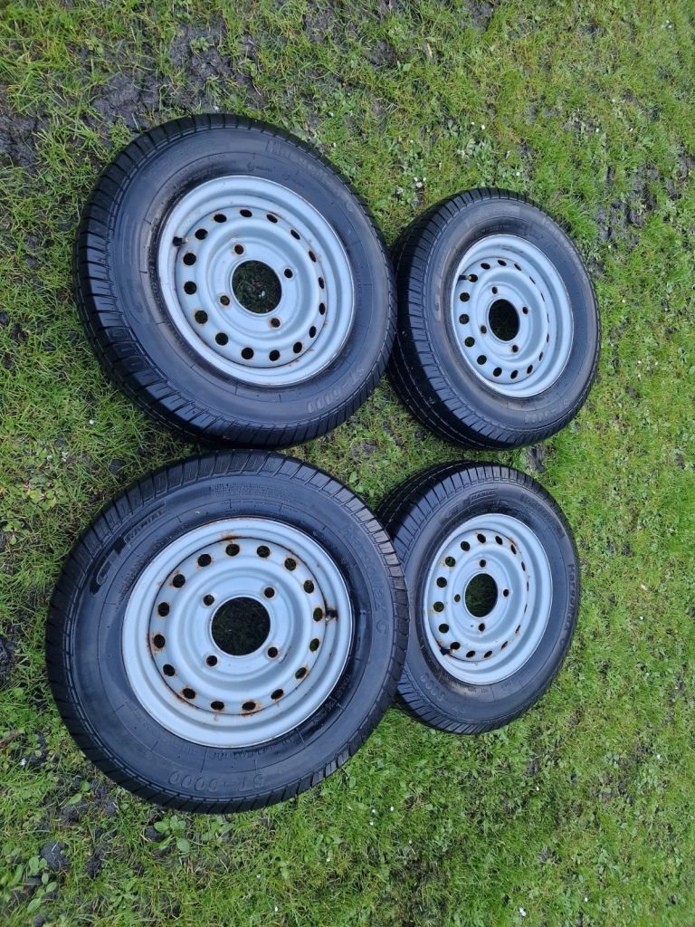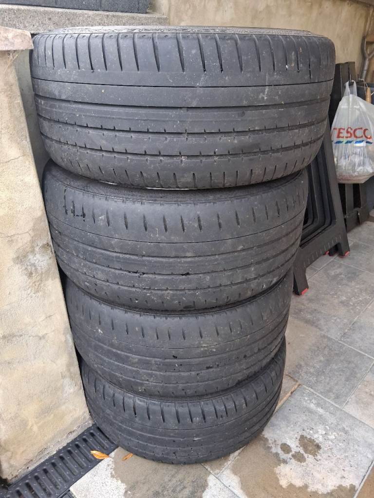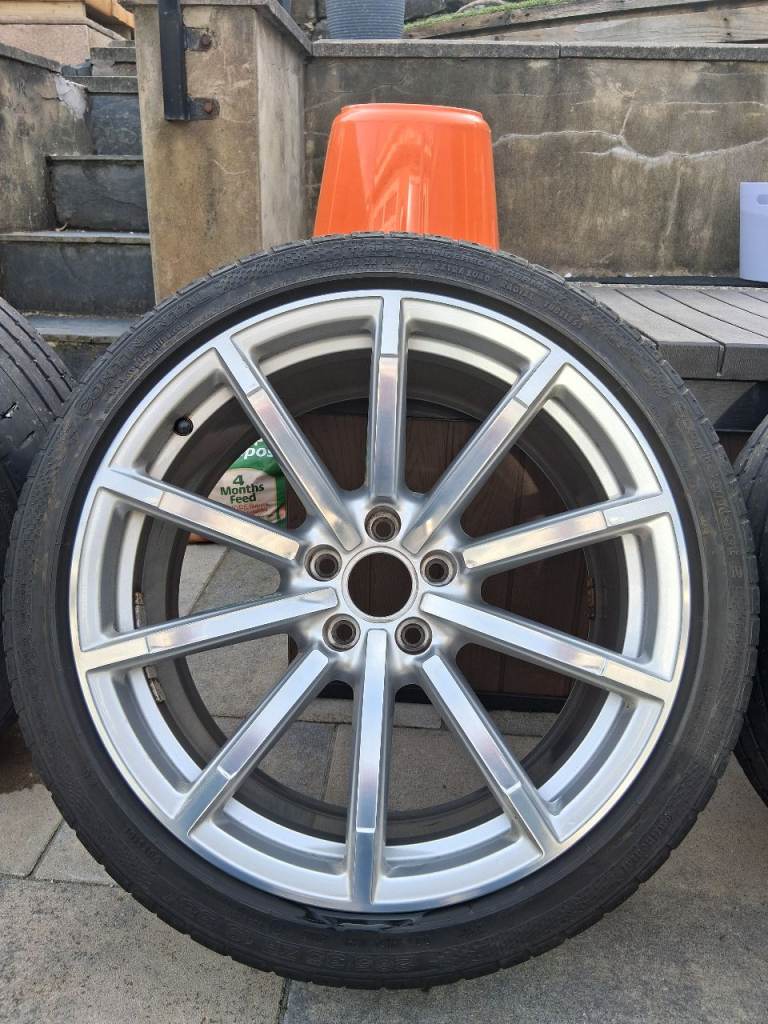 Tyres do need replaced hence low price these sell for 1600 a set with good tyres, 1 has a small dig at rim as can be seen in photos check them out bargain set of wheels