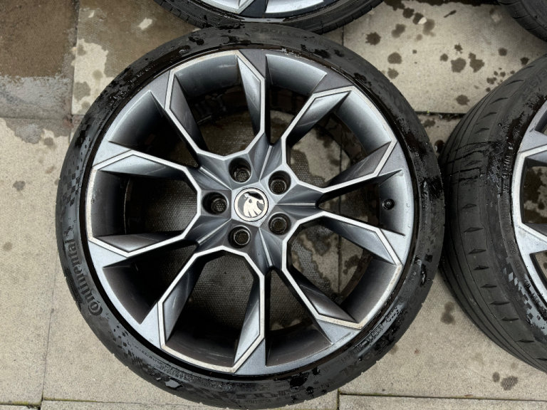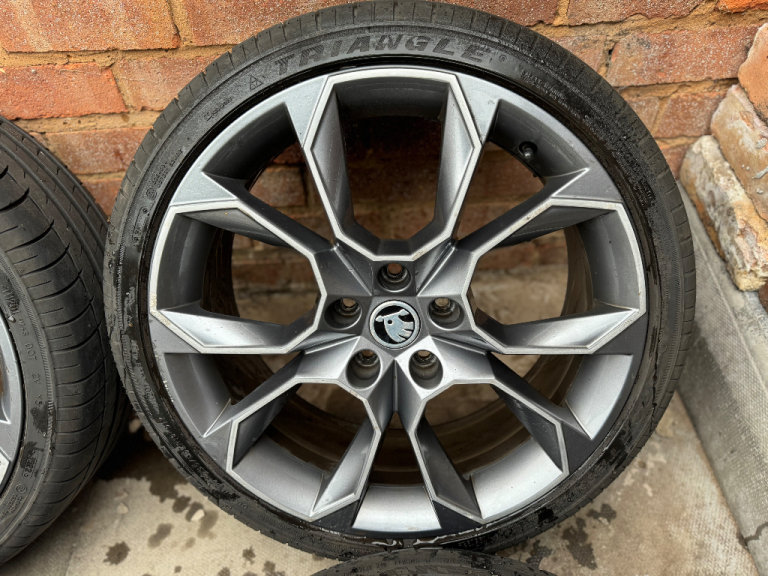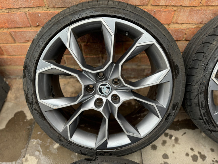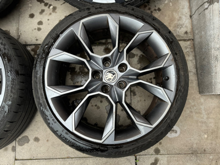 Genuine set of 4 19” diamond cut Skoda Octavia vrs alloy wheels with tyres No buckles, welds, cracks or previous repairs All straight and true Tyres are in decent condition all above legal limit, 2 are fairly new other 2 will need changing soon Overall alloys are in good condition, very few curb marks and general wear and tear