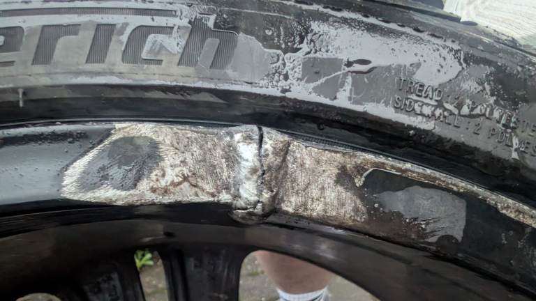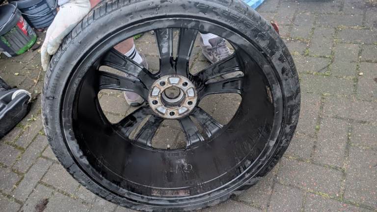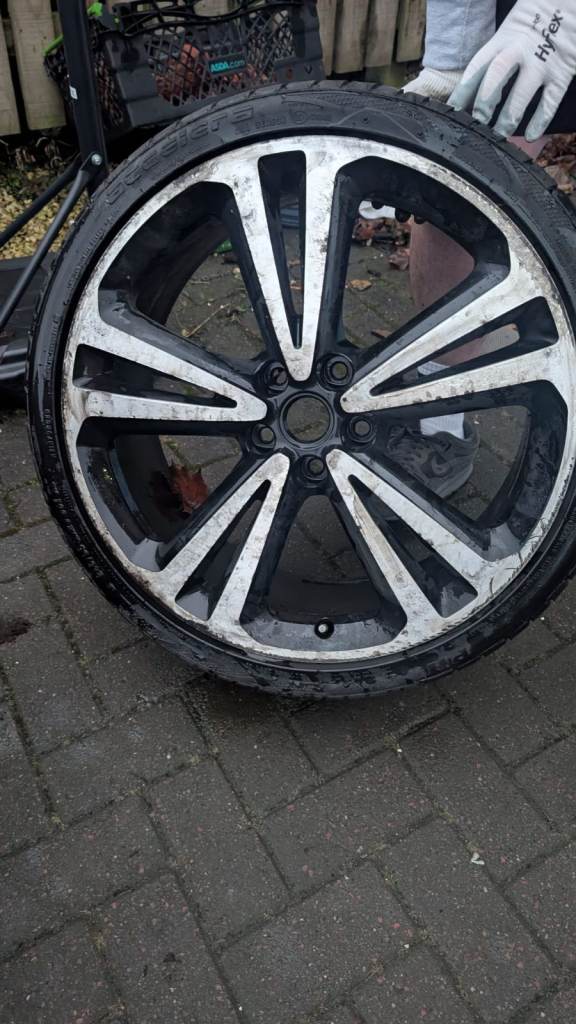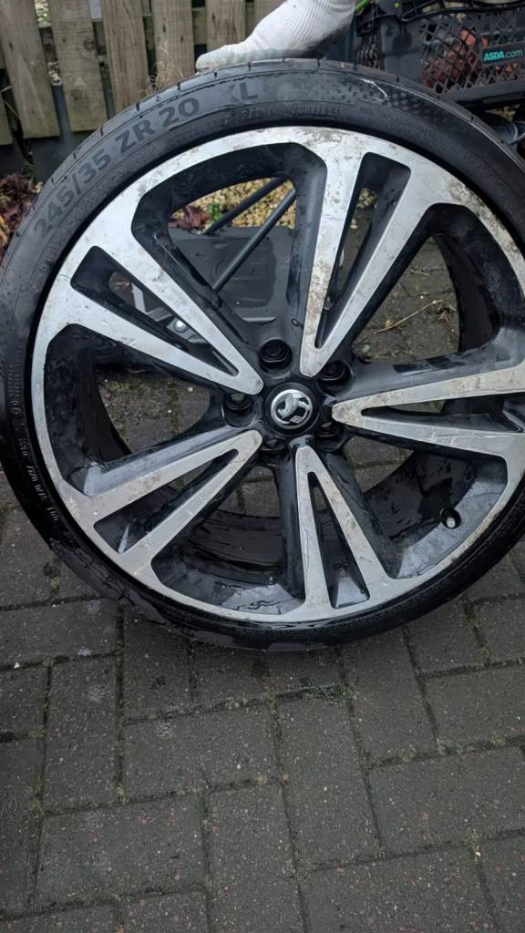 5off genuine Vauxhall SRI Alloy wheels came off an 17 plate insignia sports tourer. All alloys have nearly new tyres on them mid range so around 160 wehn new. 3 allyos have cracks and need repoars as seen in the pics the other 2 have no repairs or cracks. all have some sort of laquar damage and or kerb damage would sell the 2 good alloys seperate. 5x115 PCD 245/35 R 20 Tyres