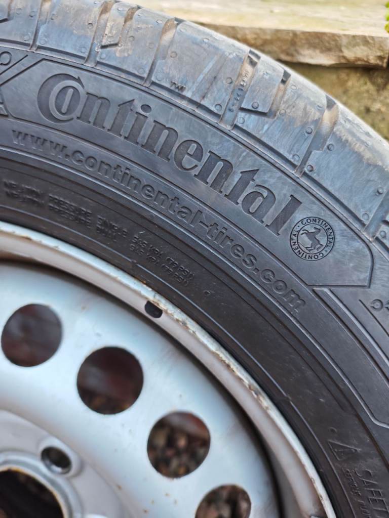 Steel wheels with Continental contiVan contact 200 tyres load rated 205/65 R 16C. Taken off new campervan for after market swap over. Tyres all at 8mm like as if new. Collection Gloucester