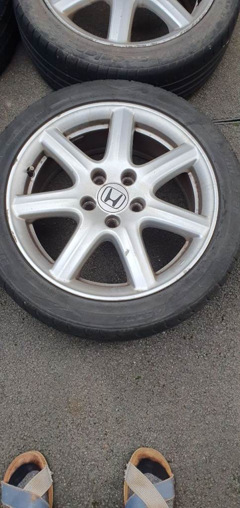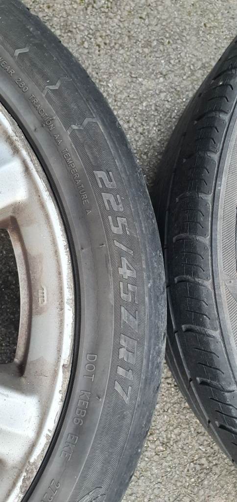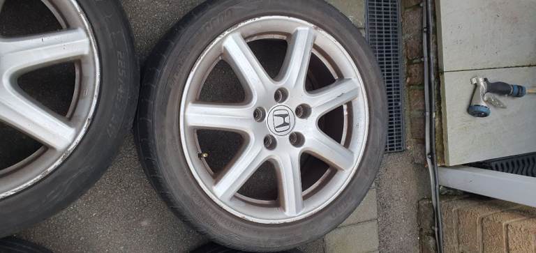 Set of 4 wheels all need tyres as not much tread and cracked 225 45 17 ideal for spare £50 for the lot or £15 for 1