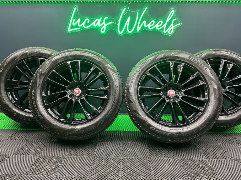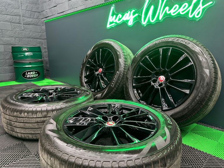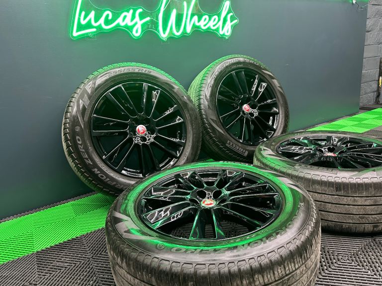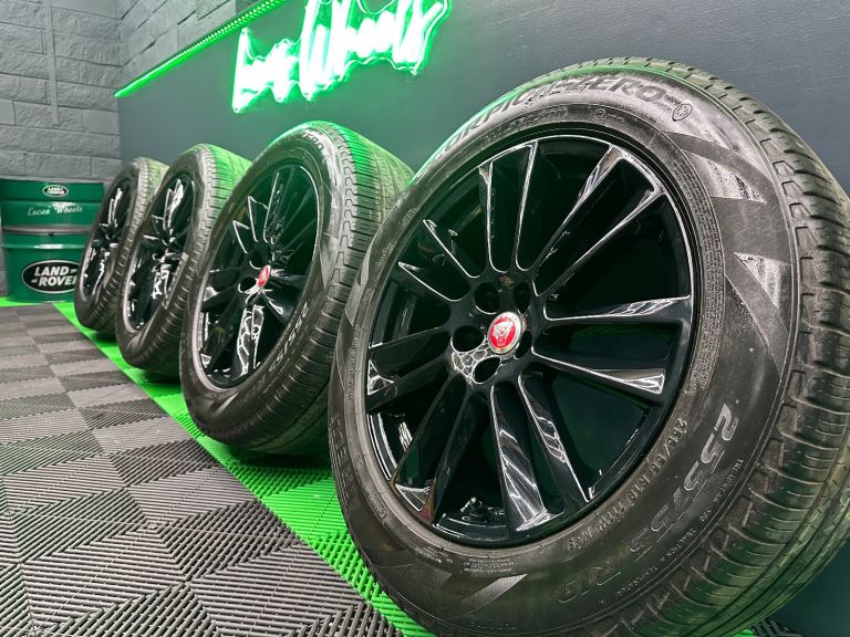 Lucas Wheels a fantastic set of Jaguar F Pace 19 Inch split spike Razor alloy wheels for sale with all premium tyres! Style 7012, brand new powder coated high gloss black 👍