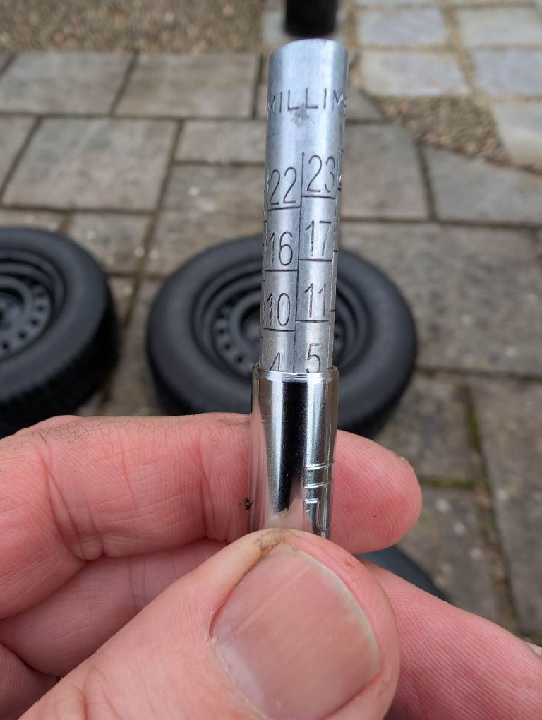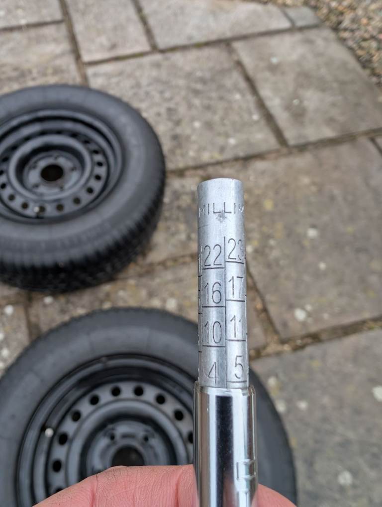 The tyres are 225 65 ZR15 99. I have added photos to show you the depth of each tyre.