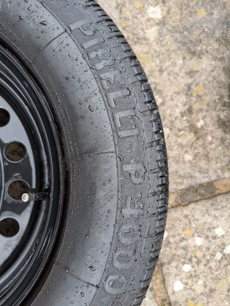 Four steel wheels with Pirelli P400 tyres. Also 4 Jaguar branded wheel trims.