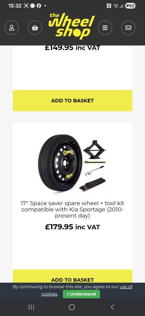 Kia Sportage 17inch space saver spare wheel 2010 to present tool kit and jack included