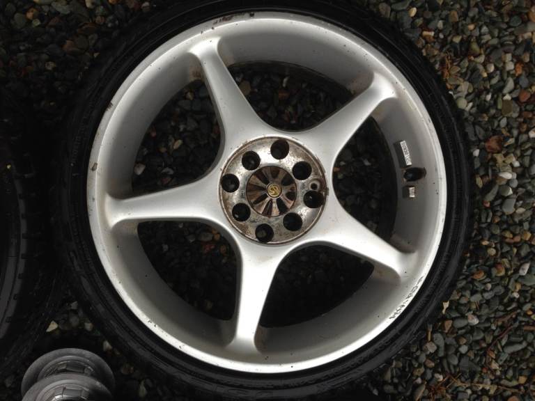 Kosei 17” Multi fit 4 Stud Alloy Wheels. Fit Vauxhall Cavalier. Should fit VW and BMW using the same holes and then Peugeot & Renault etc. using other holes. Choice of centre caps also. No cracks, welds or buckles - old good quality alloy material. Recommend new tyres. £130.