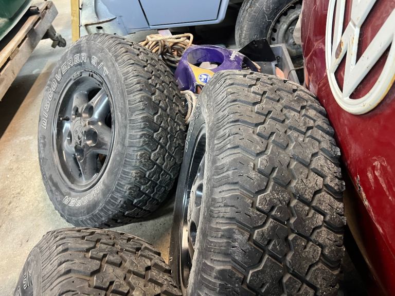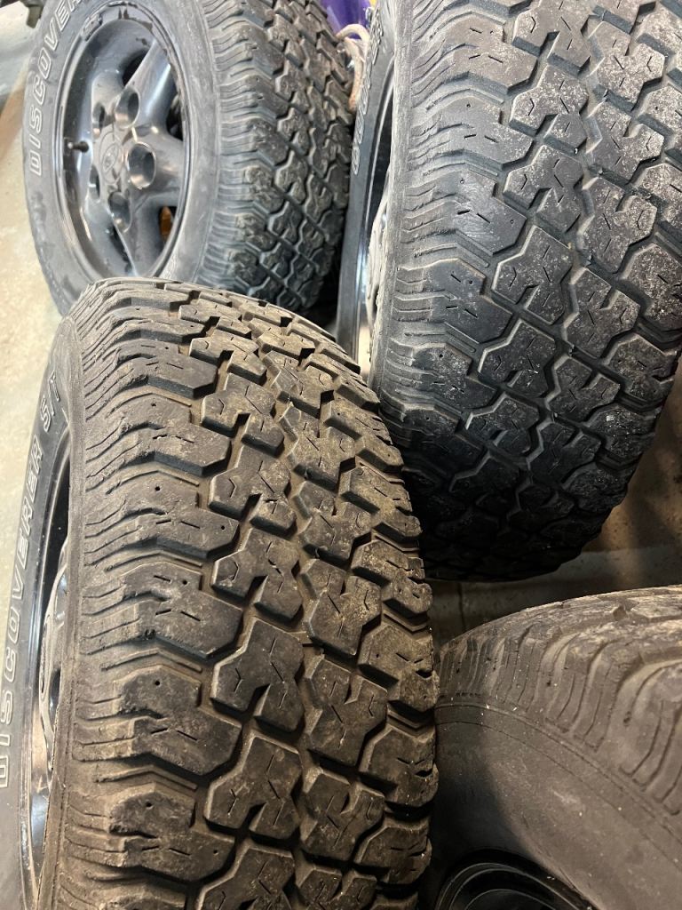 Set of 4 Land Rover discovery wheel with tyres, also fit defender. All tyres have decent tread, 2 have gone flat over time so might need resealing on the rims