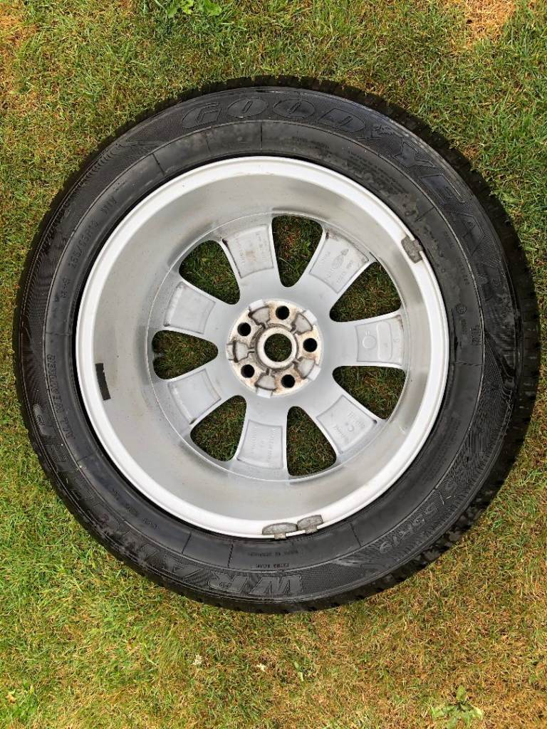 Landrover 19 inch alloy rim with unused Goodyear 255/55/R19 M&S tyre which still has the new tyre print on the tread. Alloy might have been used previously but is in excellent condition. Now surplus to requirements.
