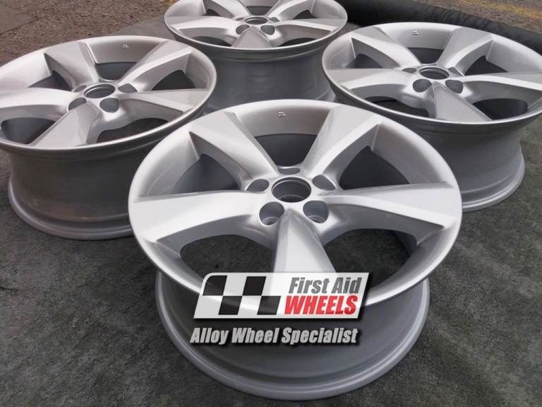 They have been fully factory refurbished to bright silver finish with powder coating (very strong durable finish baked in the oven). They were test fitted. 2 wheels were scratched behind the spokes on the front callipers so have smart repairs but that will not be seen once fitted to the car.