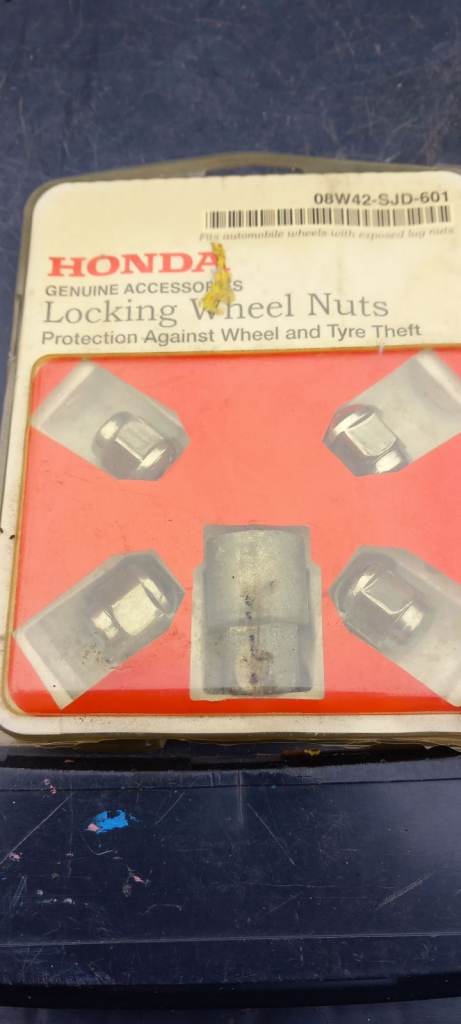 Set of locking wheel nuts. Honda make/parts, but presume would fit standard car wheel/hub studs. £5 collection Dereham NR191PW