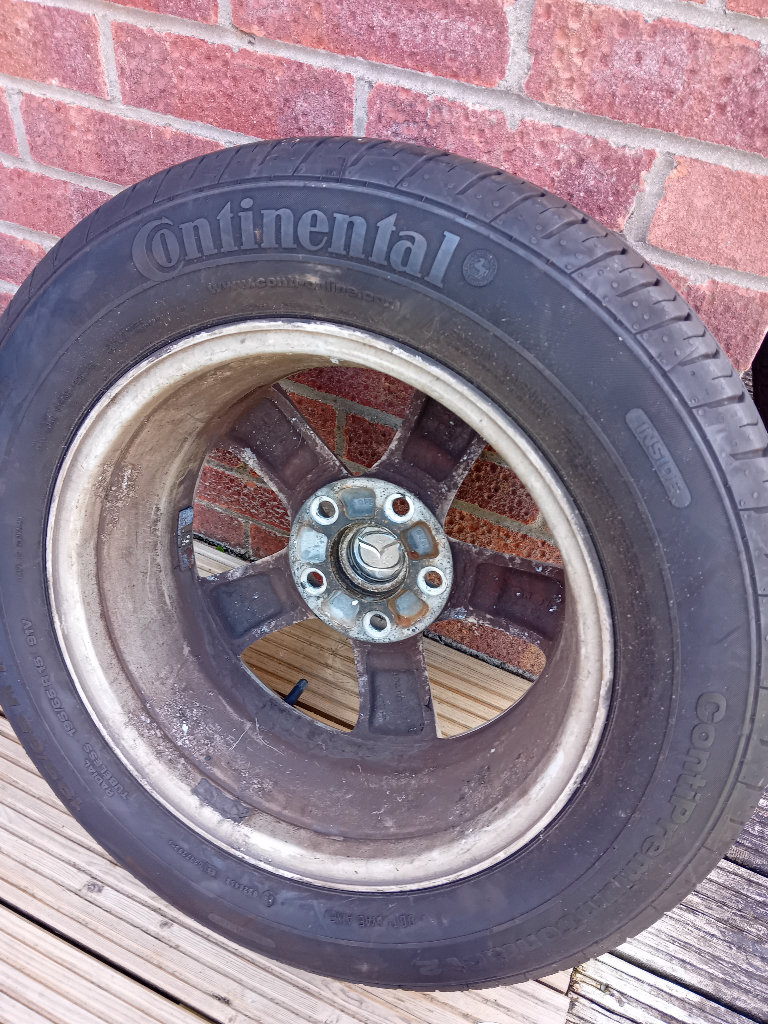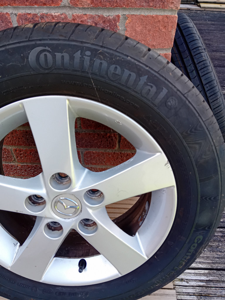 A good condition alloy wheel and tyre in good condition to fit mazda 3 . Bargain as a spare tyre would cost well over £100 it's a continental radial tubeless 195/65r15