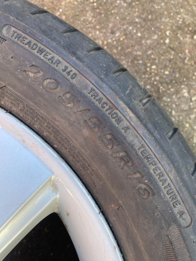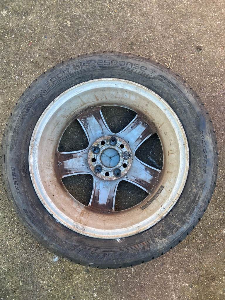 Mercedes 16 inch alloy wheel 5 stud in good condition, some small marks, fitted with a Dunlop 205 55 16 Tyre with some slight cracking between the treads (please see photo) but again nothing major (the tyre is flat at present).