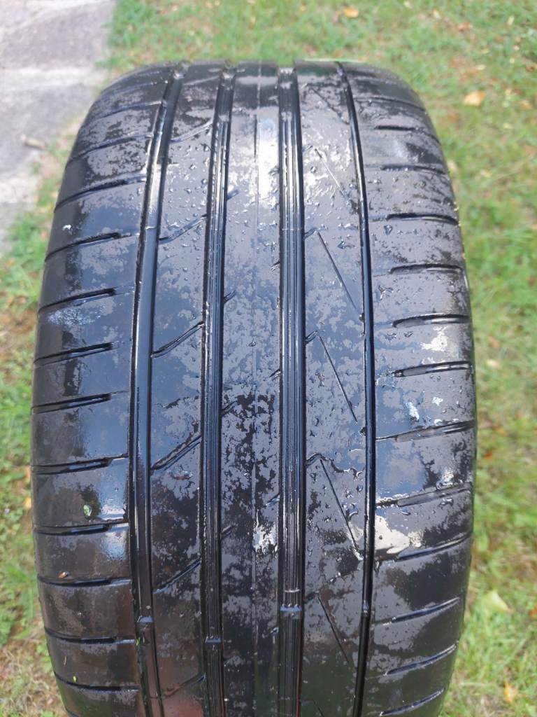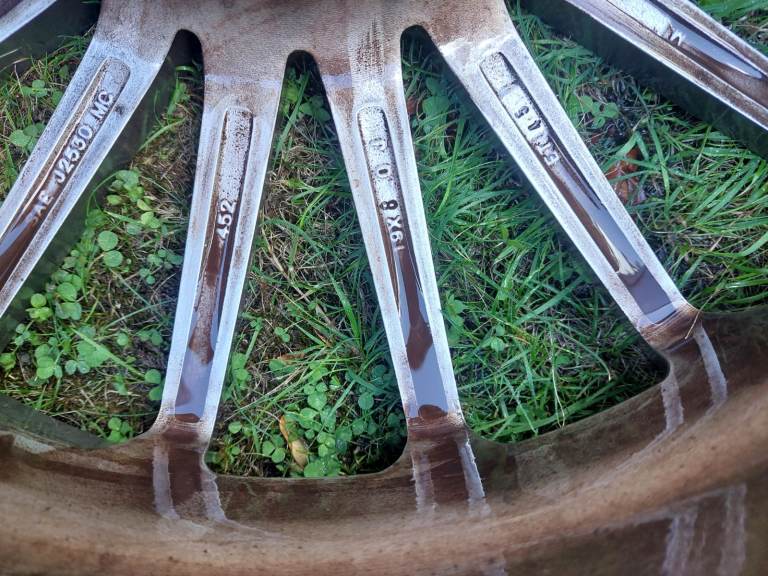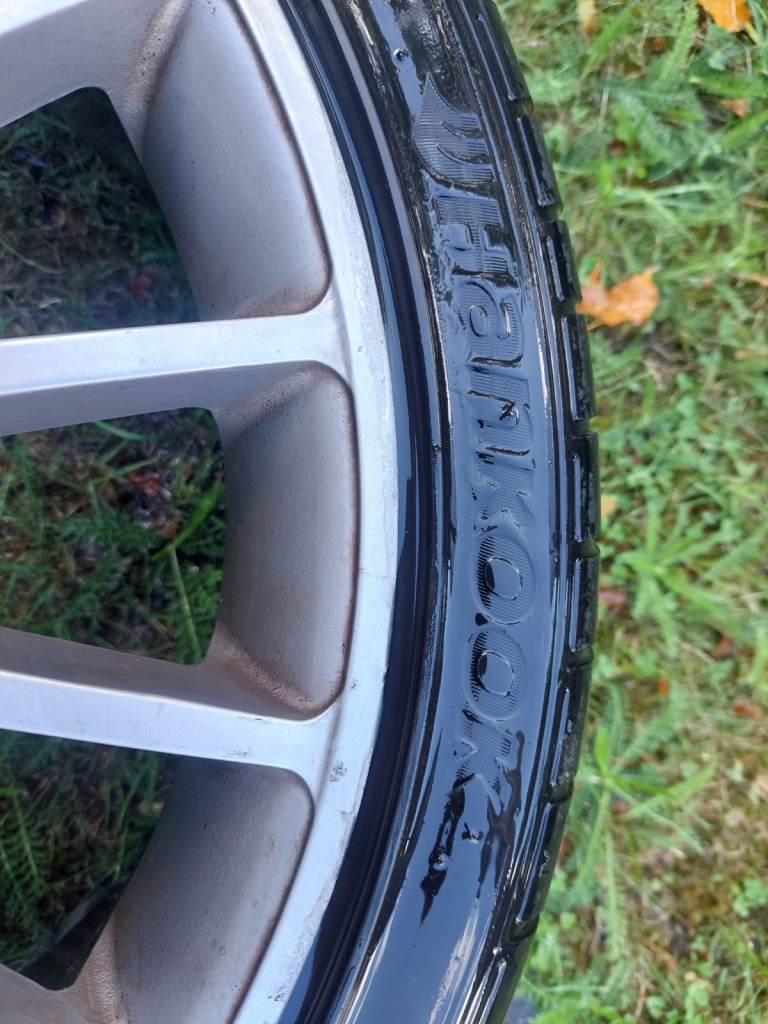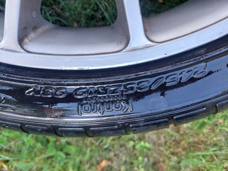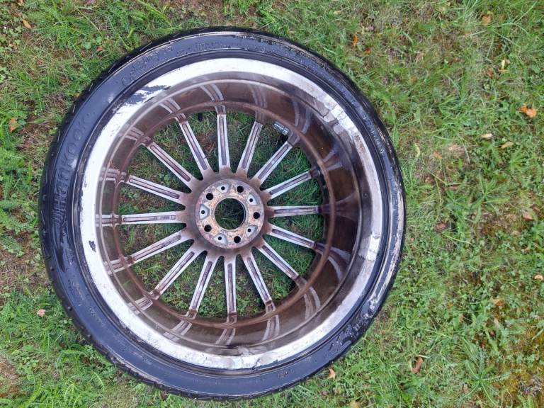 19-inch turbine style 16 Spoke alloy wheel. Had a hair line cracks but it's been repaired by onyx performance in slough properly. Only one little shown curb mark In picture. With hankook 245 35z R19 tyre