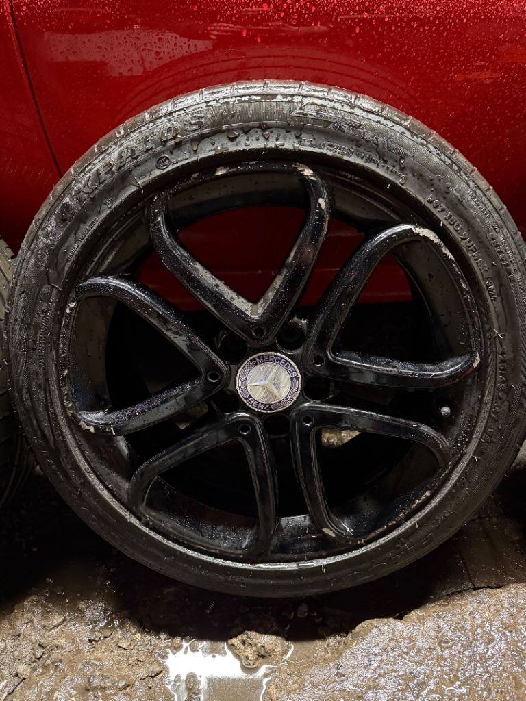Mercedes A class amg alloys x3 17” 225 45 17” 3 alloys selling due to only needing one alloy no cracks 3 good tyres £60