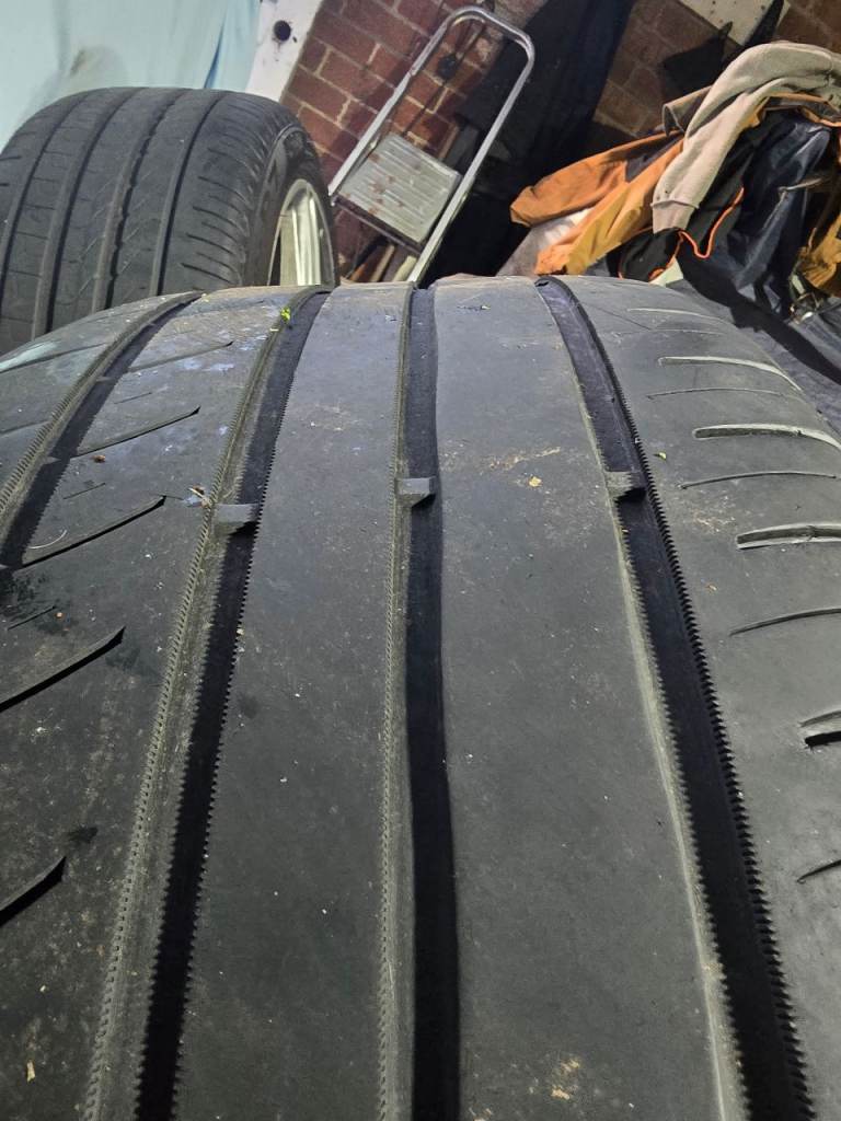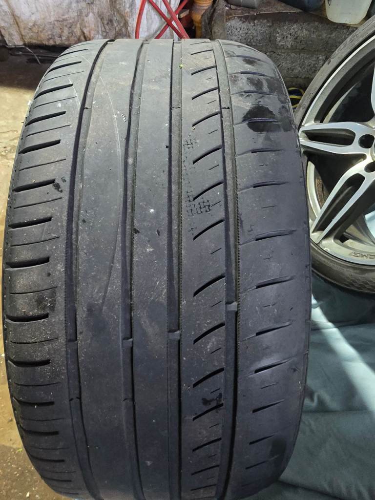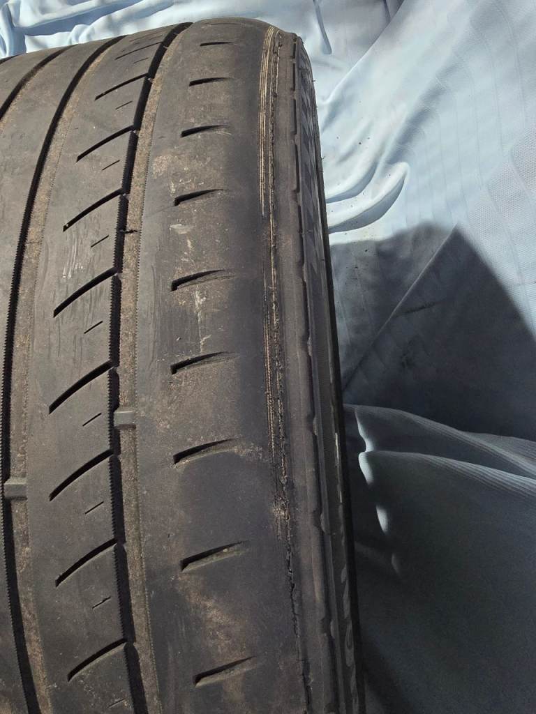 Rear tires 275/35/19 RXMotion run flat 4mm tread left. One has inner wearing signs, shown on picture