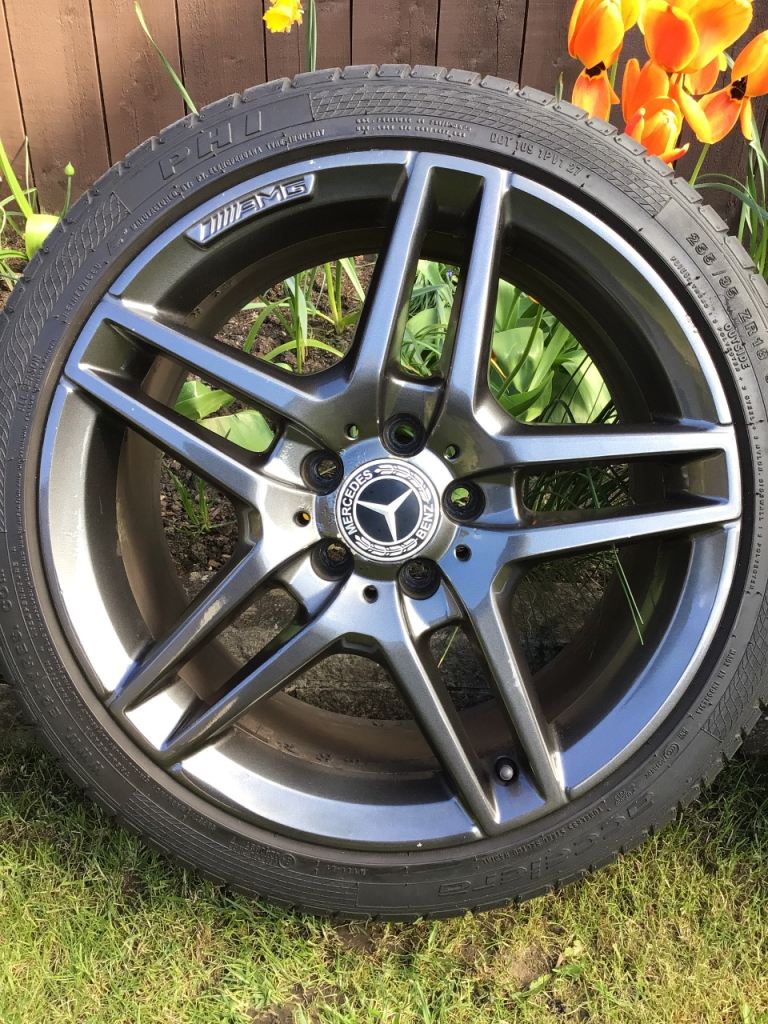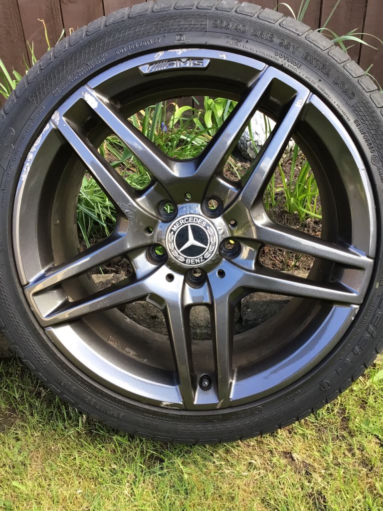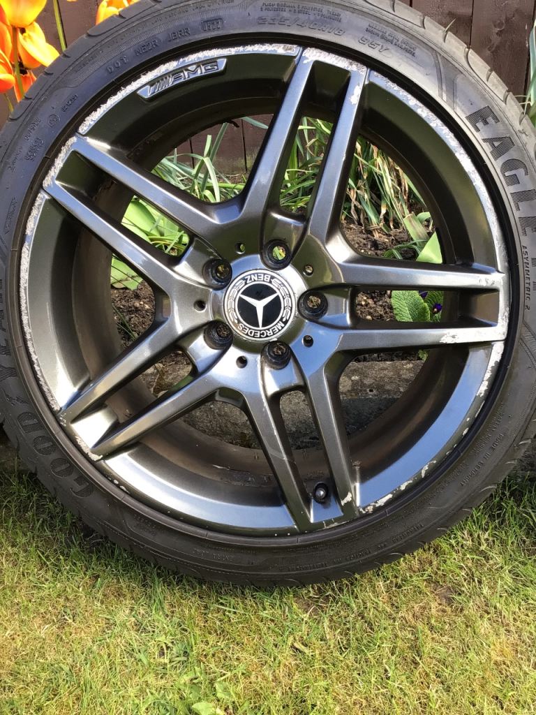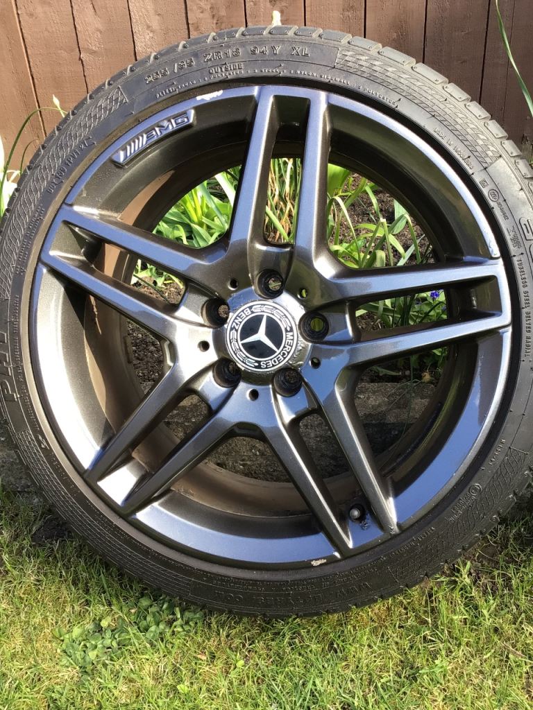 Here i have a set of 18 inch Mercedes AMG staggered alloy wheels and tyres which i have just removed from my E250 AMG coupe.