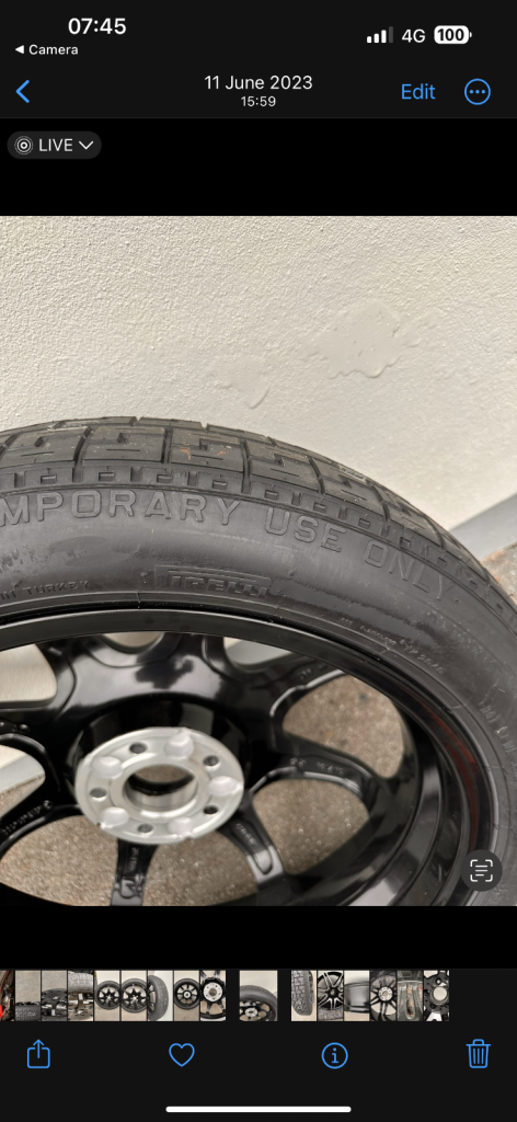 Brought this as not many manufacturers supply real wheels as a spare this one is a clever addition the rear hub is designed to fit both front and rear hubs as they are different sizes so it was specifically for my AMG Mercedes 350 convertible brought from Plymouth Mercedes it wasn't cheap and came new new it was not cheap £450 with their vat it's so very handy the Mercedes ran on 21 inch wheels however the run flats will be 19 inch pick up from me in looe