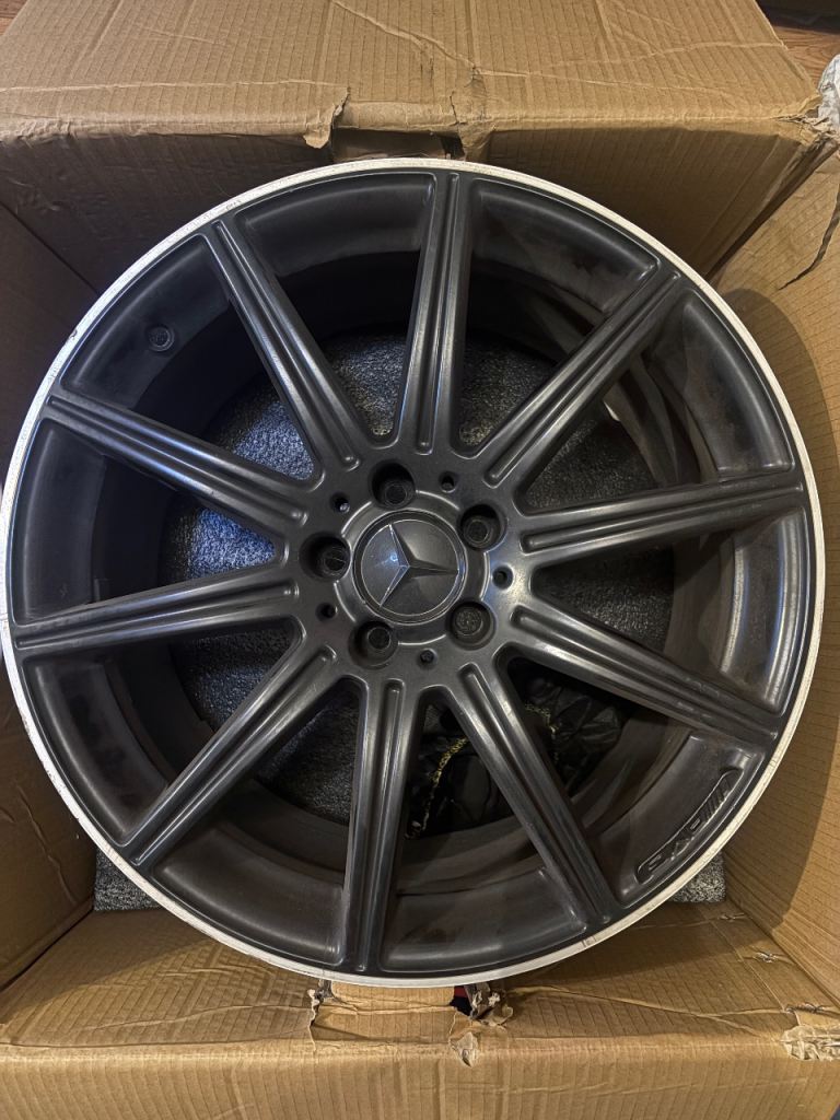4 genuine Mercedes e63 alloys, came off a 2014 model. 19 inch 255/35 on front and 285/30 on rear, not sure of offset.