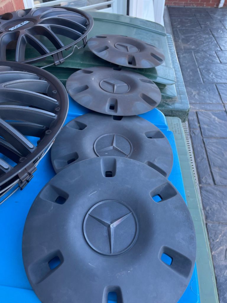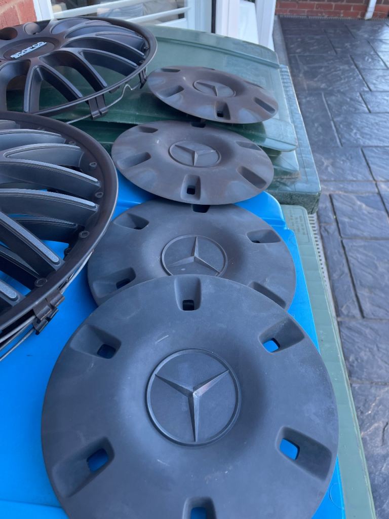 4 factory fitted wheels & tyres all with excellent tread. The original Mercedes stud covers are also part of package.