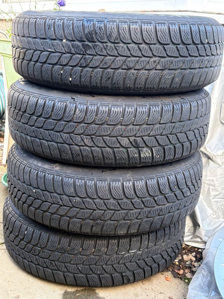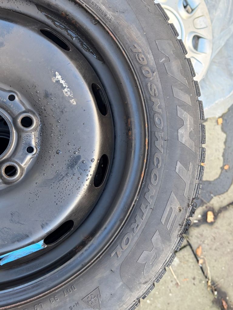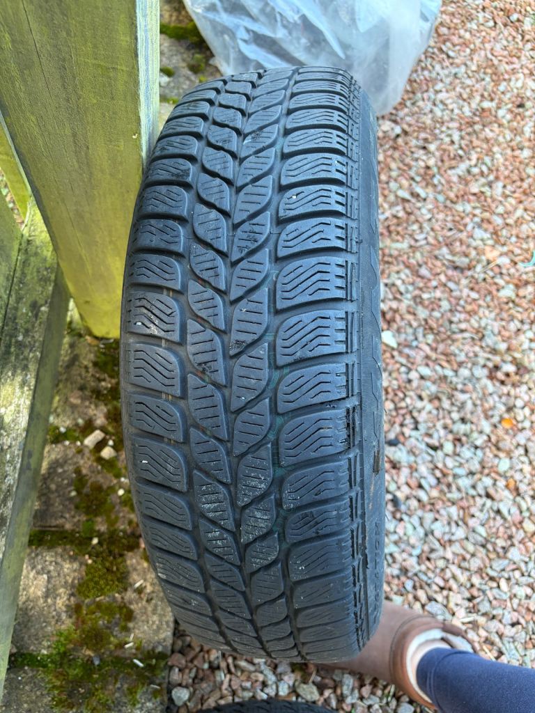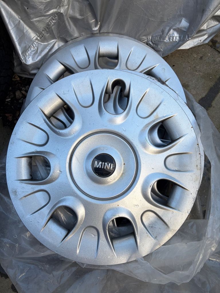 Pirelli Snowcontrol 175/65 R15 tyres x4 with steel rims. Mini branded wheel covers - one of them has some minor damage (pictured).