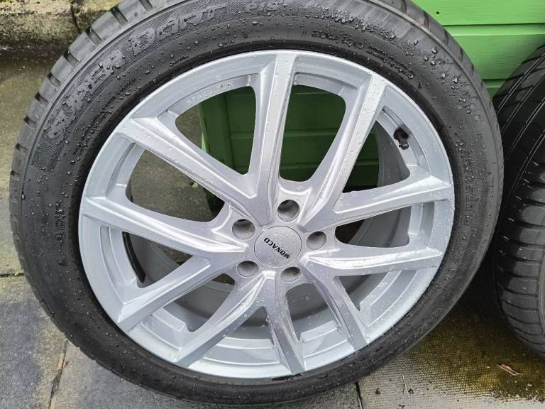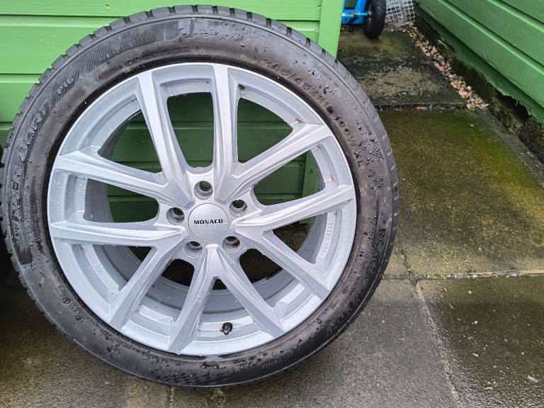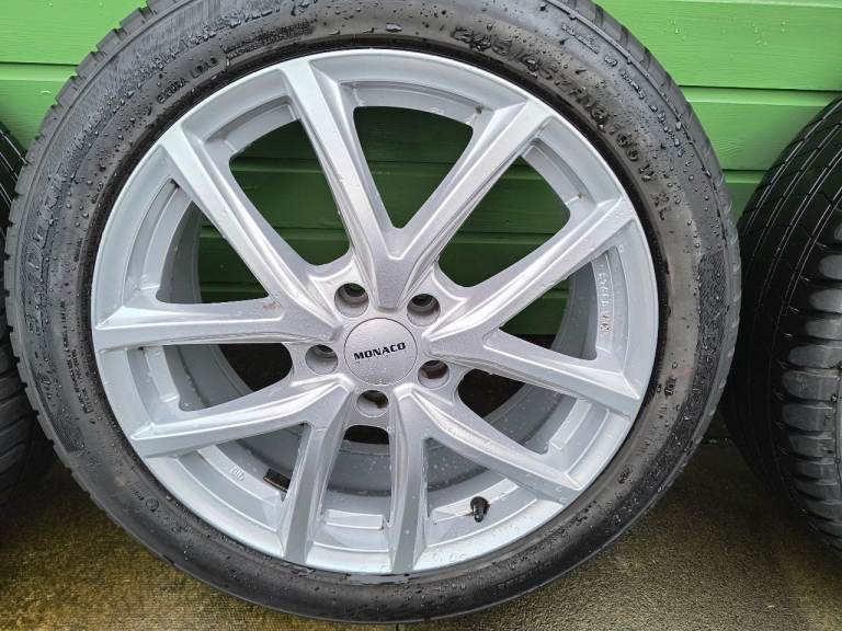 *PRICE REDUCTION* Set of 4 Monaco 18" alloy wheels 5 stud with good tyres. Fantastic condition as good as new. Never refurbished. The wheels and tyres have only covered 12,000 miles. First to see will buy. Wheel nuts included! £360 No Offers.