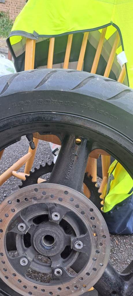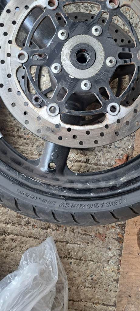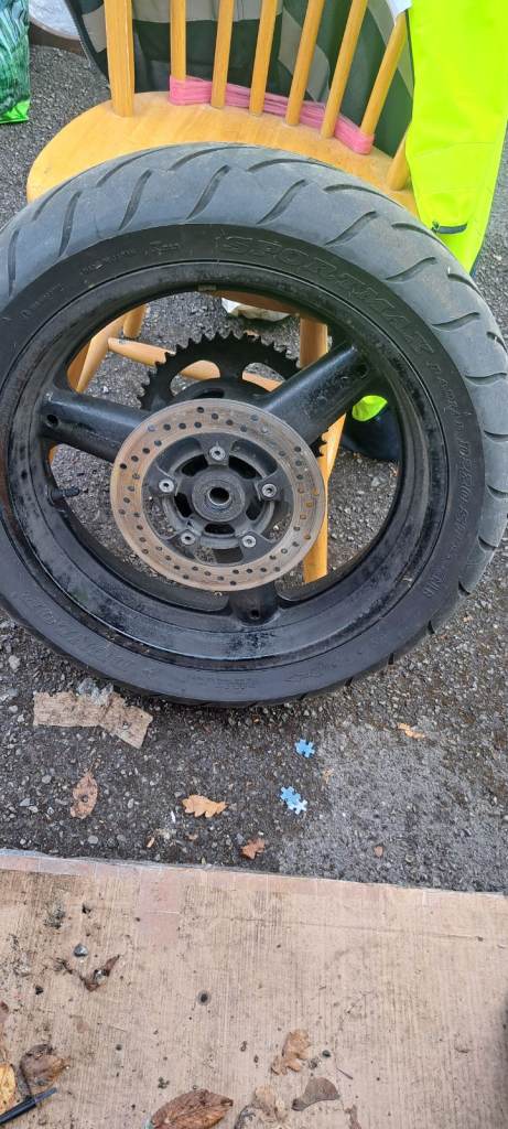 Motorbike wheels and tyres of Suzuki SV650. Covered only 1 season. Sizes are attached on photos. No postage. Very good condition. £30 each or £50 for both. Must go ASAP.