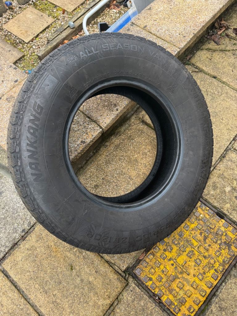 I have 2 Nankang All Season Van AW8 tyres from my motorhome, plenty tread and load rated. £10 each 2 off.