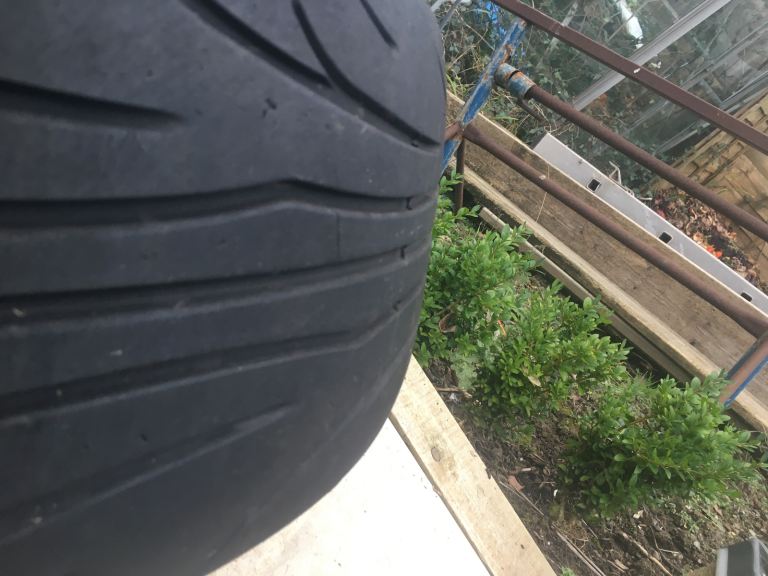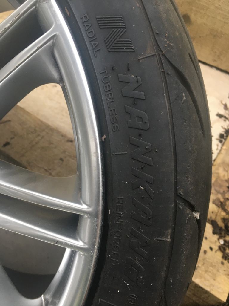 One pair of Nankang track tyres with 5-6 mm of tread. These are brilliant on track. They are on BMW fitment alloys.