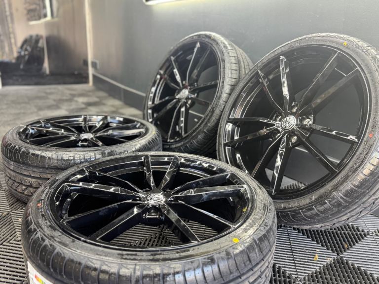 NEW 19” inch vw gloss black pretoria alloys wheels 5x112 golf r caddy gtd gti scirocco