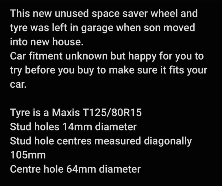 Posting for 10+ yearsNew unused space saver wheel and tyre
