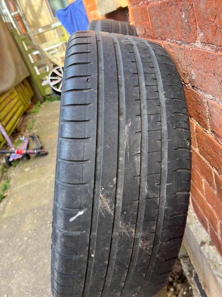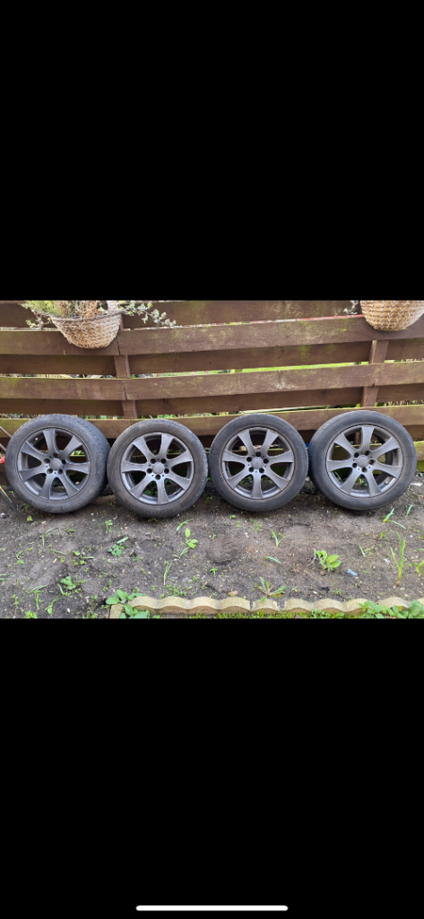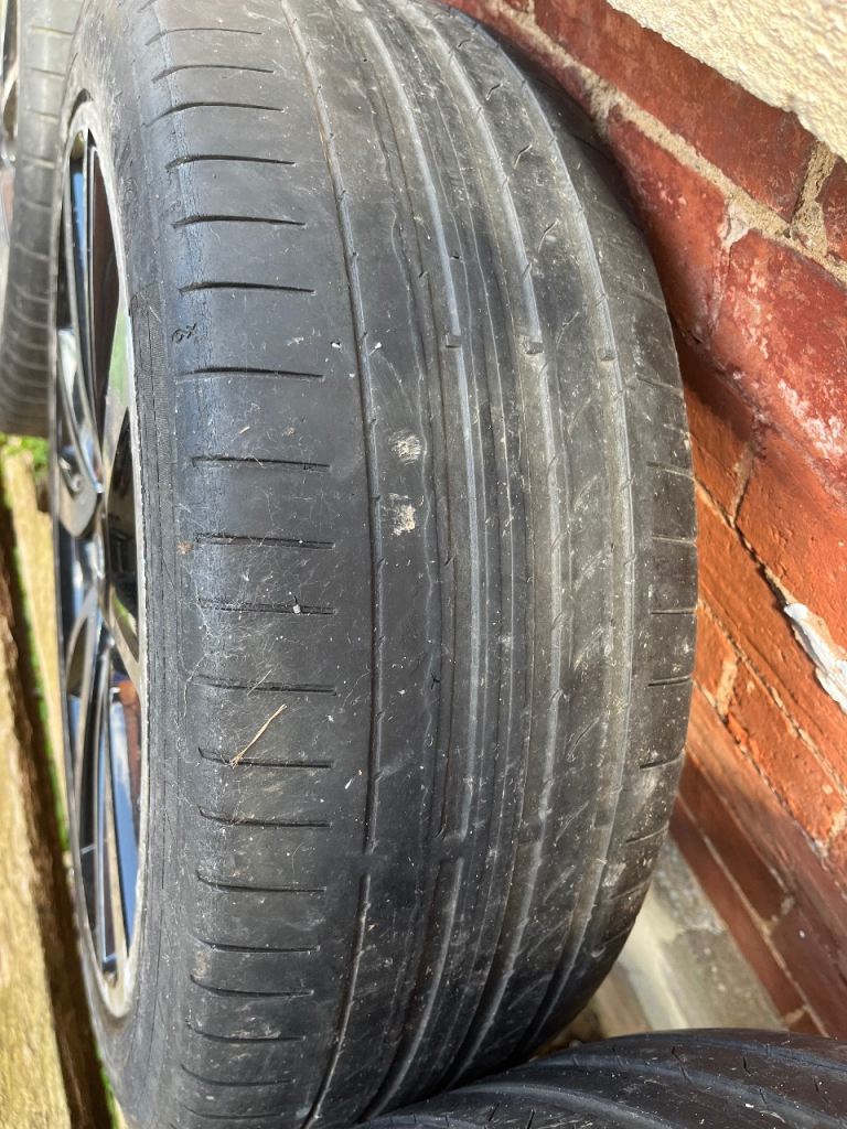 The wheels could do with a bit of tidying up & tyres are on the limiters. However, they are all straight & true without any repairs or welding. Tyres sizes are 225 45 R19