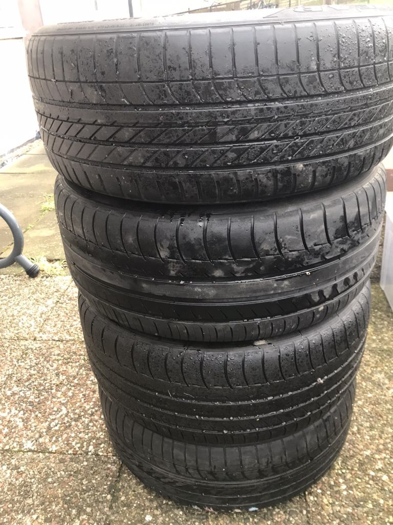 Hi for sale 4 Porsche original German alloy wheels in excellent condition like new two Michelin tires two tires Goodyear tires still in very good condition I invite you to watch and make offers