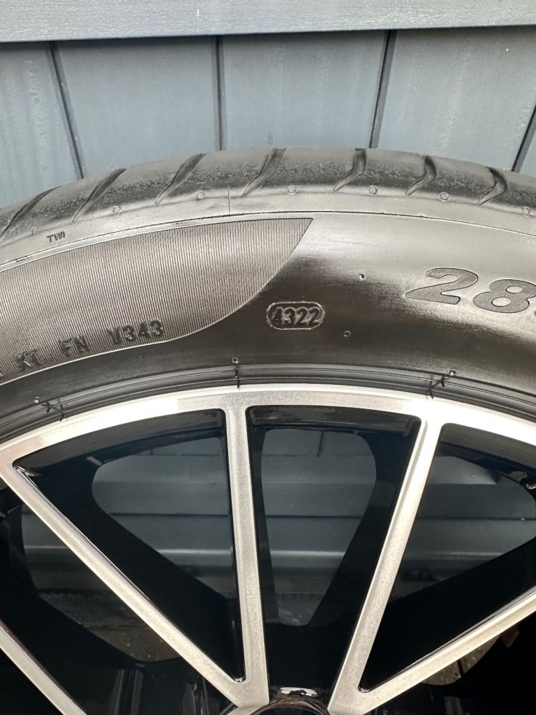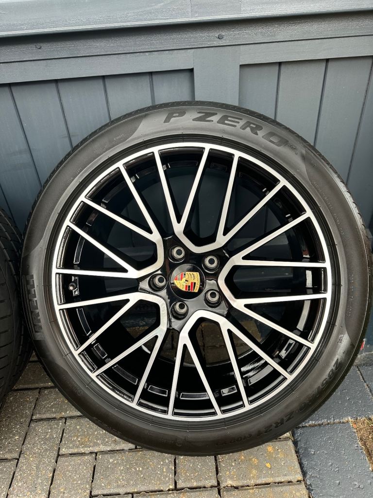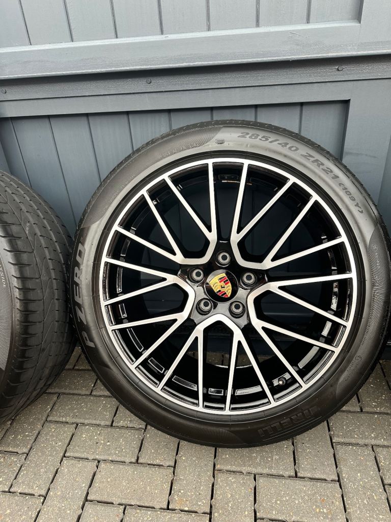 Front axle: 9.5 J x 21 ET46 with 285/40 ZR 21 109Y XL Pirelli P Zero tires Porsche hololocation 4mm tread.