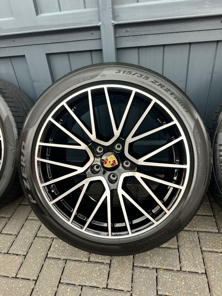 Rear axle: 11 J x 21 RO 58 with 315/35 ZR 21 111Y XL Pirelli p ZERO tires Porsche homologation 5,5mm tread.