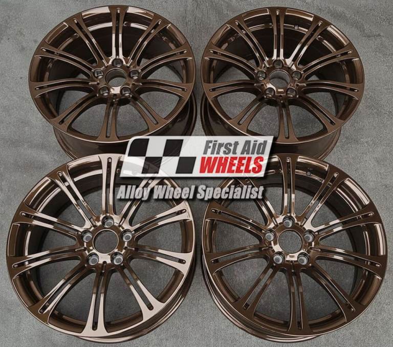 You can exchange this set like for like 4x 19'' genuine OEM (Original equipment manufacturer) BMW 3 Series E90 E92 E93 M3, Style 200M M-Sport alloy wheels. They will be fully factory refurbished to Imola bronze finish with powder coating (very strong durable finish baked in the oven).